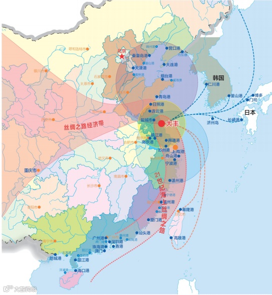 区位优势明显。大丰处于中国经济热土长三角经济圈、环渤海经济圈和江苏沿海开发经济圈三圈之核心,“一带一路”重要节点,沿海高铁纵贯全境,深度融入上海一小时经济圈,坐享得天独厚的区位条件,是盐城东向出海的桥头堡。国家一类对外开放口岸—大丰港,是江苏中部重要的出海大通道,联通韩国、日本、俄罗斯等13个国家和地区。大丰是上海“飞地”。