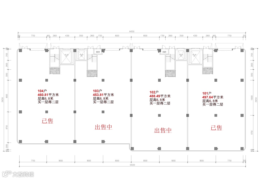 103户:453.81平方米,报价4850元/平,总价220万。