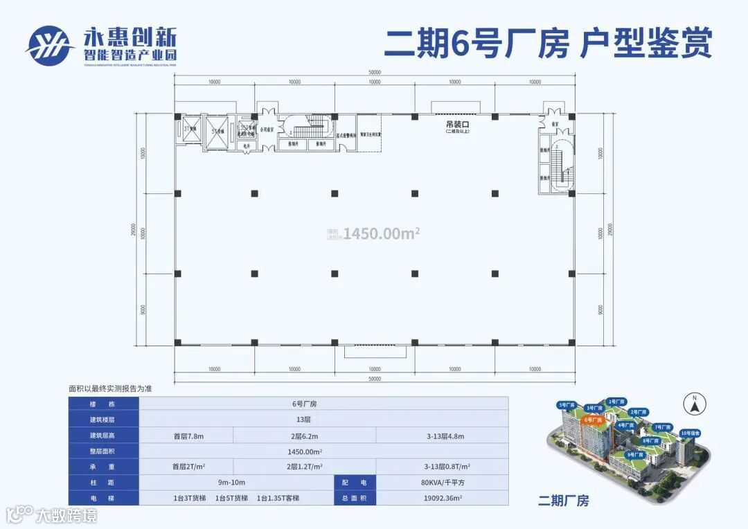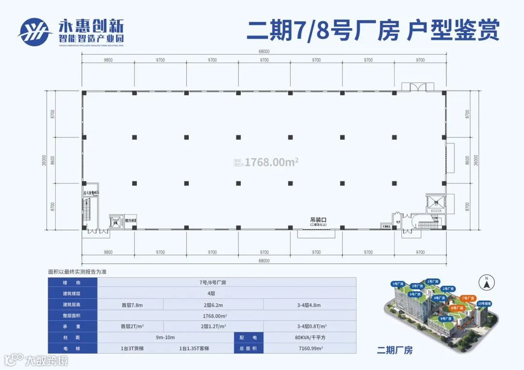 厂房层高:独栋首层7.8m,2楼6.2m,3楼以上4.8m