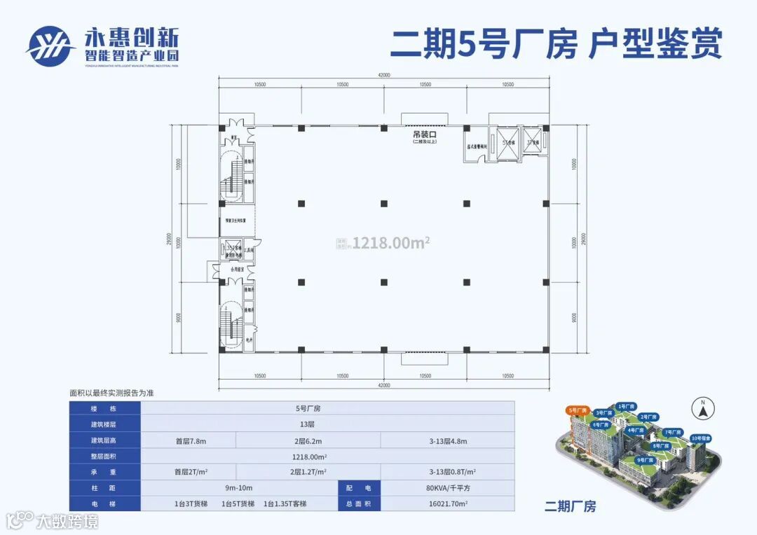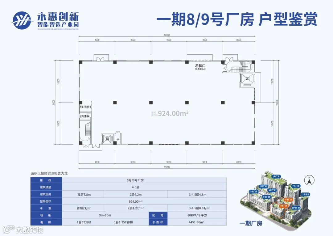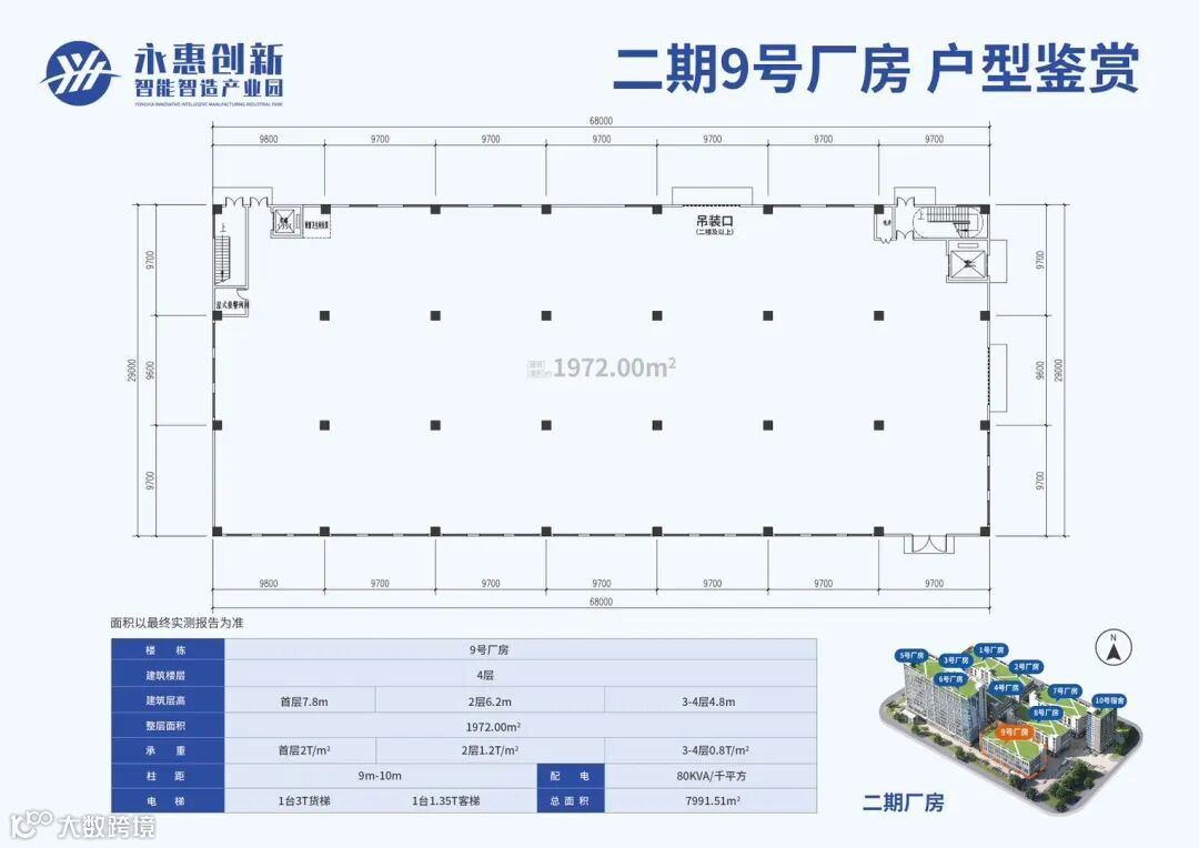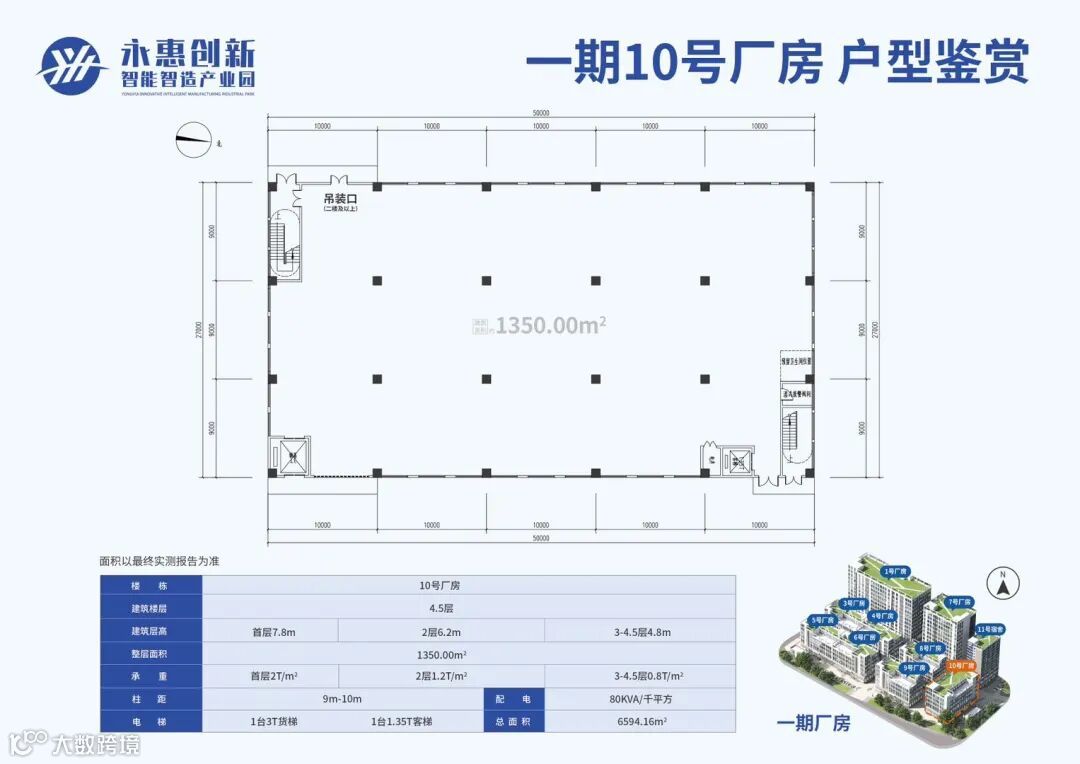 柱网宽:超宽柱网,柱跨10*9米,可灵活布置产线