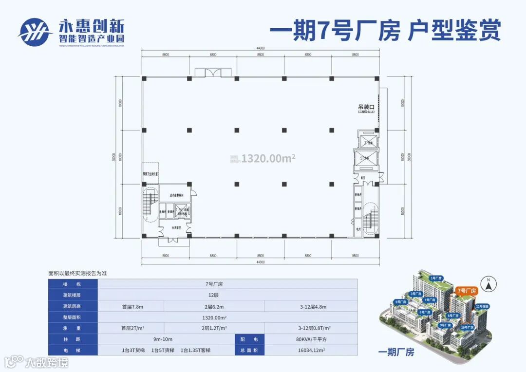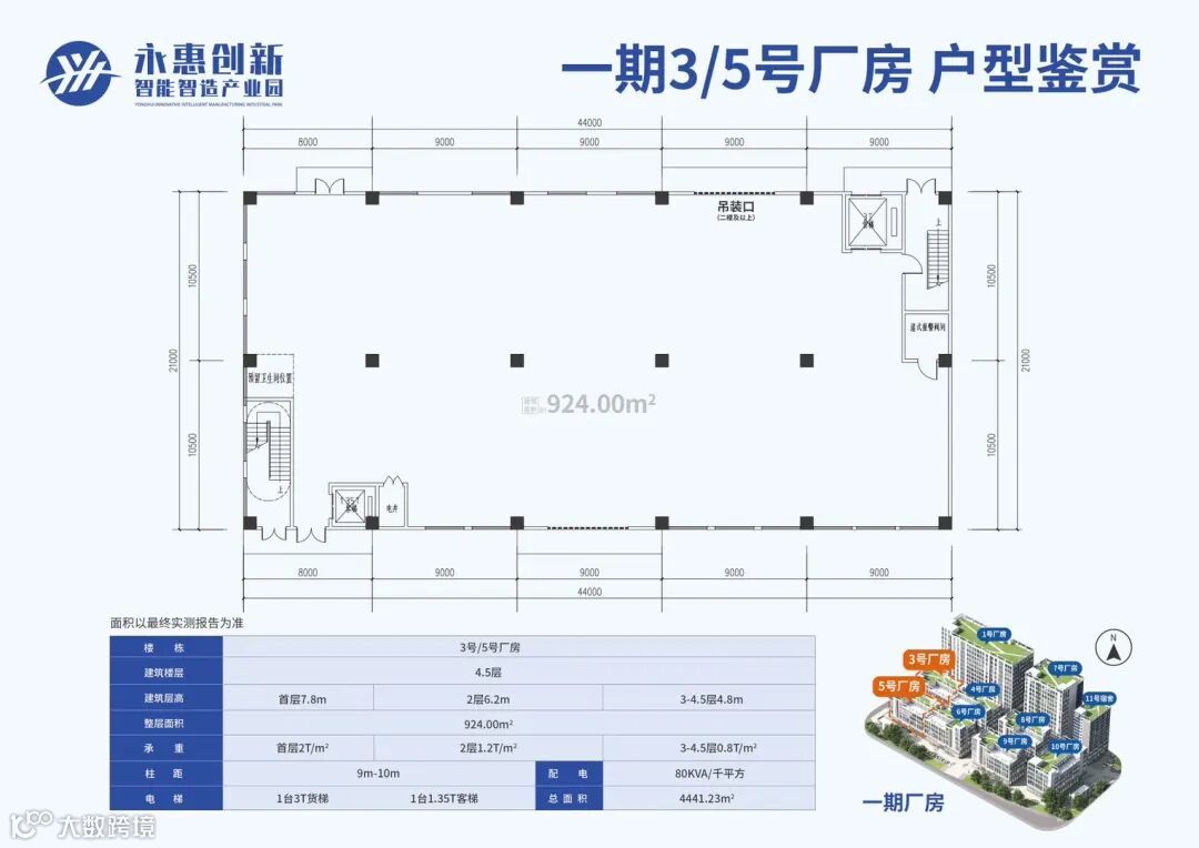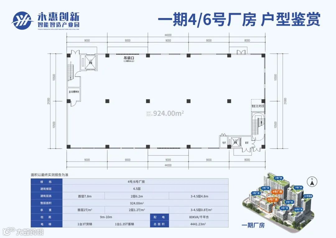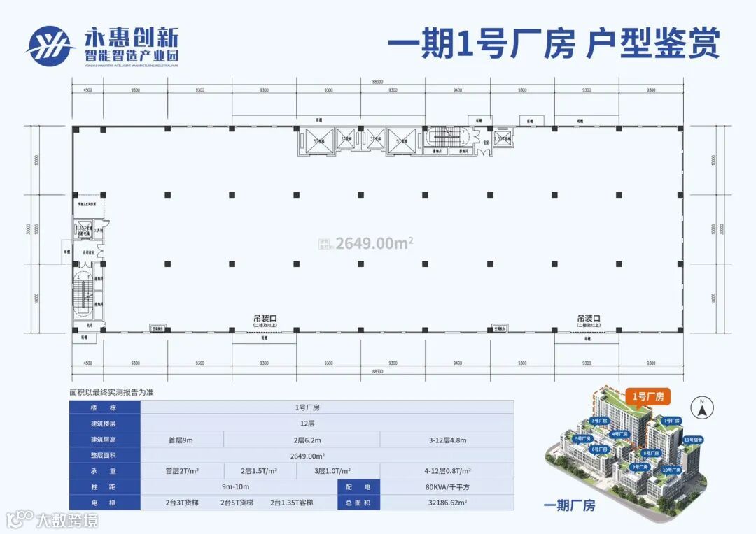 柱网宽:超宽柱网,柱跨10*9米,可灵活布置产线
