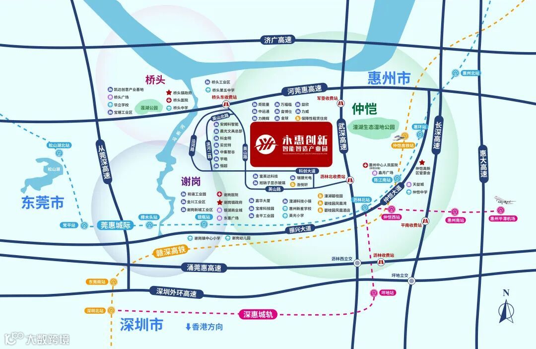 广东(仲恺)人工智能产业园全省首批5家人工智能产业园之一、惠州重点打造的7个千亿级工业园区之一、广东自由贸易试验区惠州联动发展区片区载体之一,规划面积约50.9㎞²,西接东莞、南靠深圳、毗邻广州和香港,地处粤港澳大湾区核心腹地,是大湾区未来先进制造业的核心战略要地。