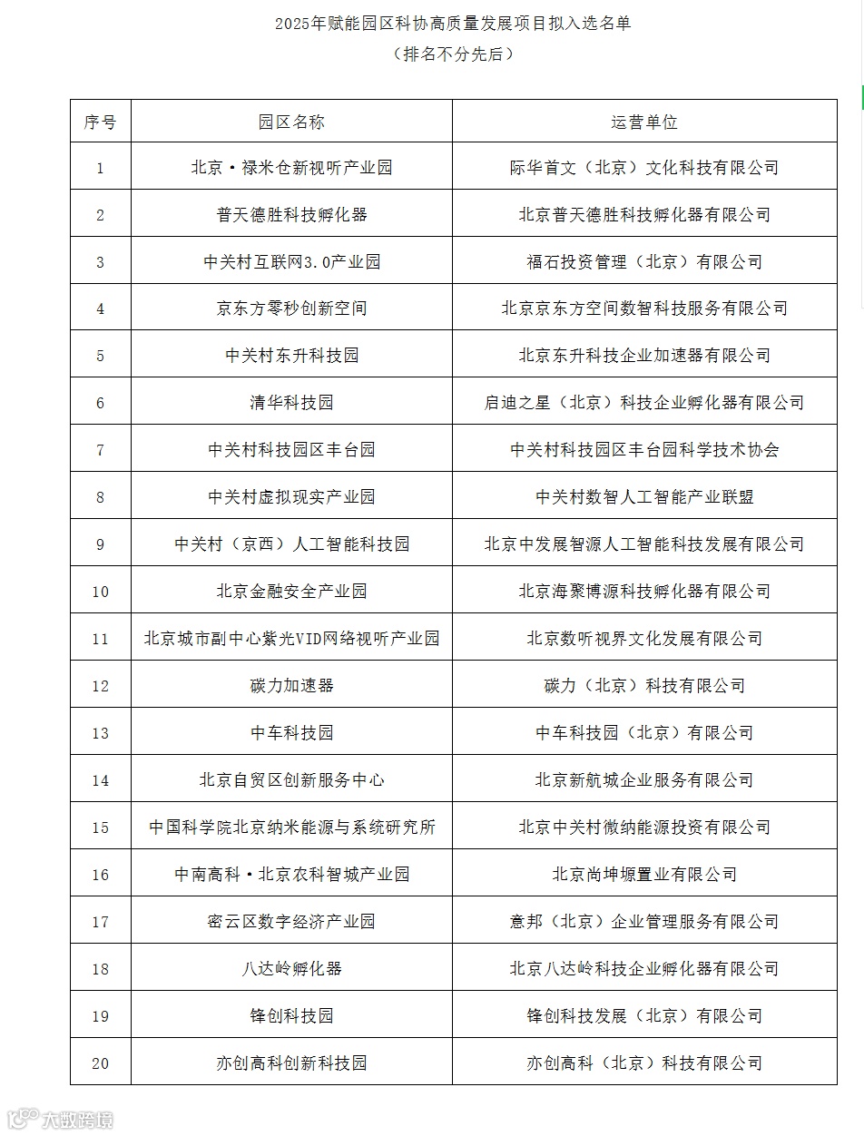 对“2025年赋能园区科协高质量发展项目”入选名单进行公示