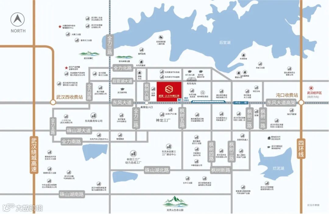 ◆项目位于东风大道与枫树五路交汇处,项目北面是后官湖大道,有一条轨电车通行,可与地铁3号换乘,站点就是园区门口,西面是智新科技公司,南面是东风大道高架,可与三环、四环快速对接,连接沪渝高速,京港澳高速,武深高速,驱车5分钟可达高速入口,项目东南角就是地铁3号线延长线枫树五路站(建设中),我们园区是名副其实的地铁上盖产业园。