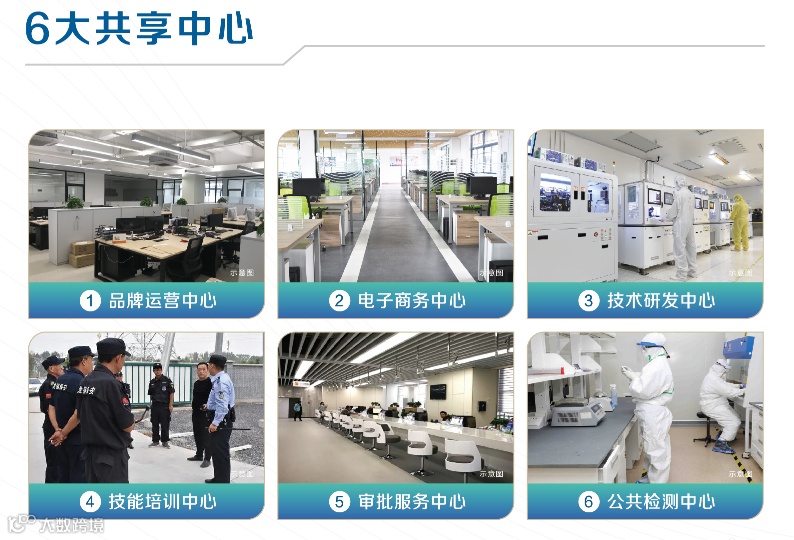 品牌运营中心、电子商务中心、技术研发中心、技能培训中心、审批服务中心、公共检测中心