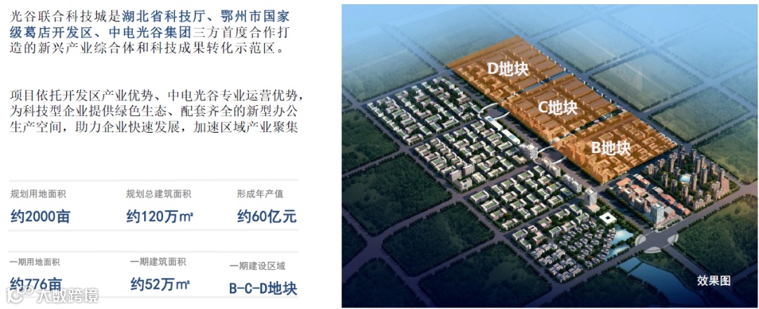 光谷联合科技城位居武汉光谷科技创新大走廊,是湖北省科技厅、鄂州市国家级葛店开发区、中电光谷三方合作打造的新兴产业综合体和科技成果转化示范区。