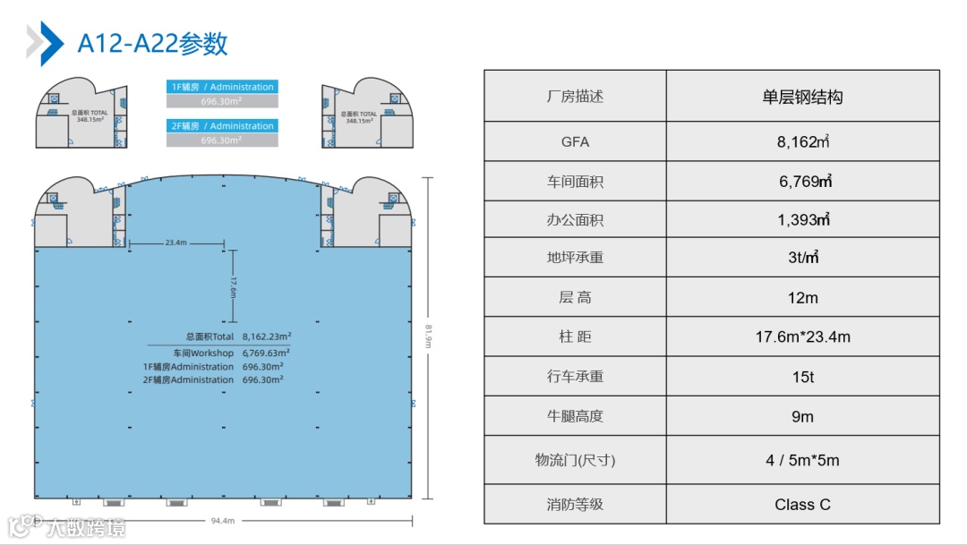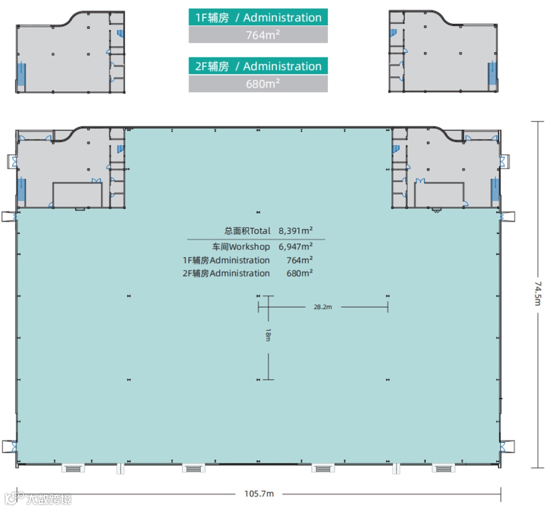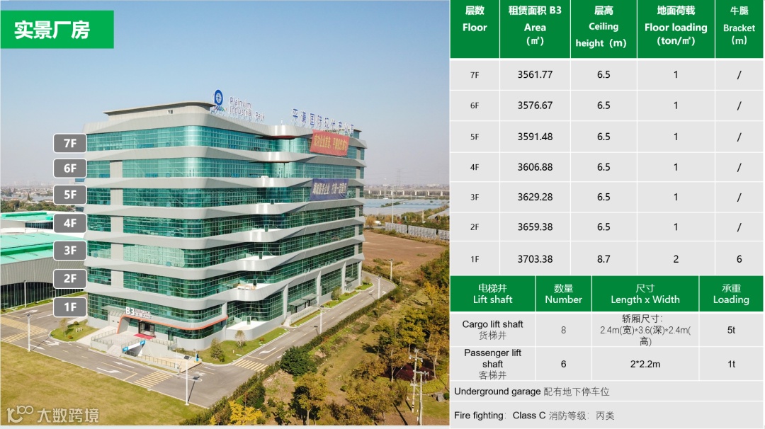 【建筑面积】:单层厂房4000m²起租,整栋9000m²;多层厂房1700m²起租,每层3600m²~3800m²左右,整栋25000m²左右