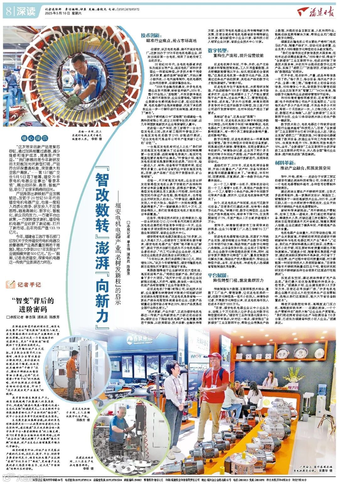 产品推陈出新映射产业发展韧劲。发轫于20世纪50年代的福安电机电器产业,也曾一度陷入同质化竞争、研发投入不足等困局。瞄准高端化、数字化、智能化,政企双向发力,一方建平台出政策,一方谋转型求新机,福安电机电器产业收获了新动能、打开了新市场,去年完成产值133.19亿元。