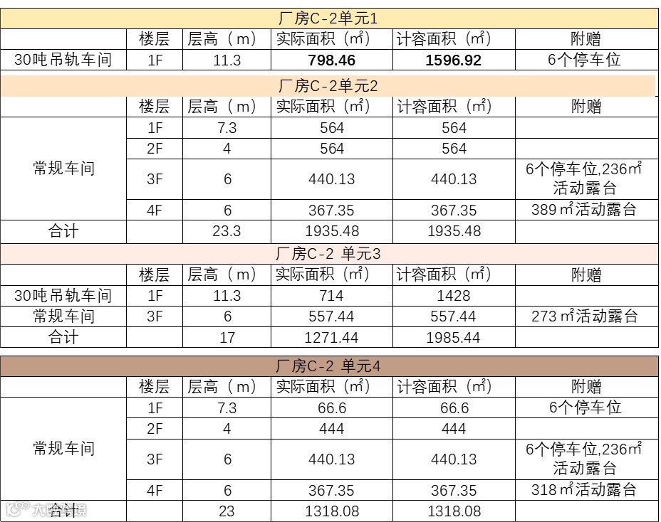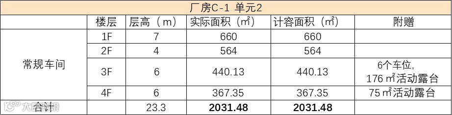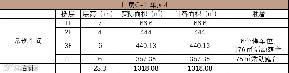 4层独栋框架结构厂房,独栋面积1700㎡-1800㎡,可双拼,首层层高11.3m,承重3吨/㎡,标准层层高4m,承重500kg/㎡,赠7个独立车位及约70㎡独立庭院和100余平方米露台。