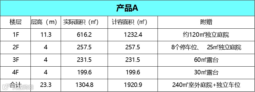 4层独栋框架结构厂房,独栋面积1200㎡-1400㎡,首层层高11.3m,承重3吨/㎡,标准层层高4m,承重500kg/㎡,赠送8个独立车位及约150㎡独立庭院和约90㎡活动露台。