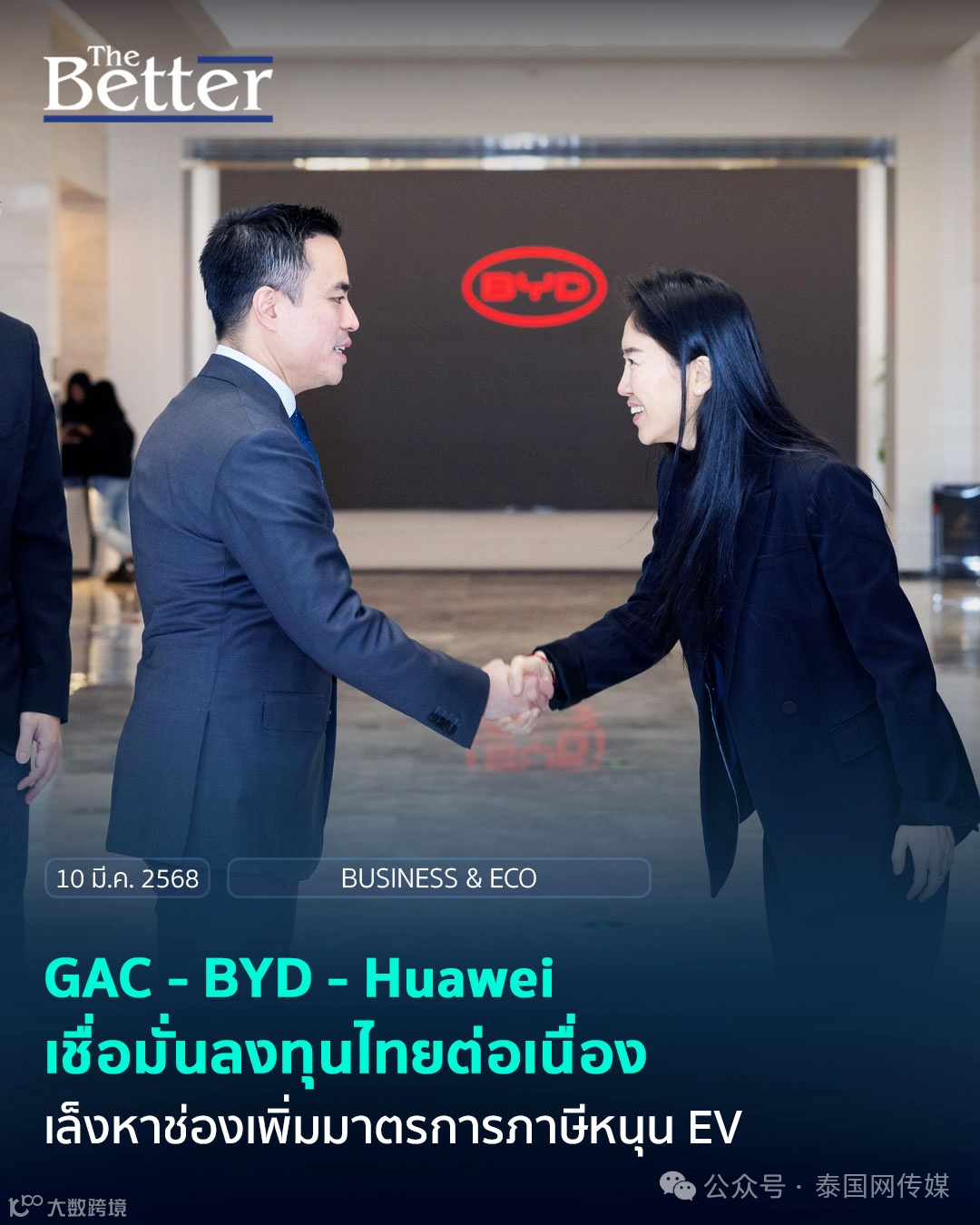 同时,在与比亚迪会谈期间,强调了政府在支持电动汽车领域的新政策,且强调比亚迪将成为推动泰国工业发展的重要力量。