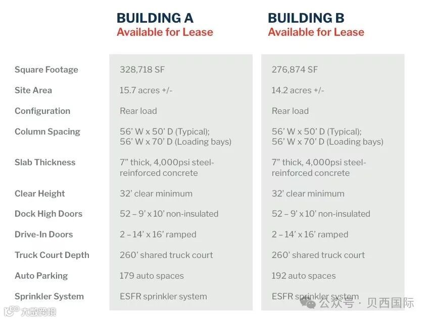 面积:仓库有两栋楼,分别是276,874平尺和328,718平尺。