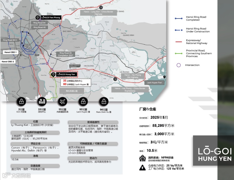优越位置:离河内中心30公里,离内排国际机场55公里,离海防港口75公里。容易招聘普通工人及高级管理人员.