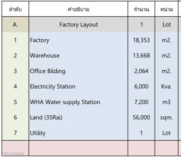 工厂出售,位于 WHA 工业园,Bowin,是拉差,春武里,面积 35 莱。