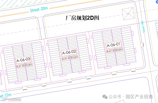 可预定厂房面积:4550平(A-06-01栋)、4550平(A-06-02栋)、