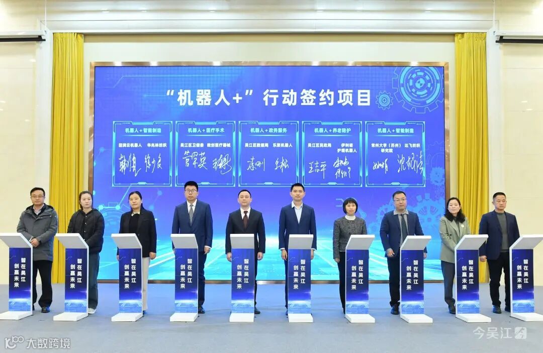 现场,“机器人+”行动项目、智能机器人产业项目等22个重大项目签约落地,涉及政务服务、养老陪护、医疗手术、智能制造、物流搬运等多个领域,为吴江智能机器人产业发展注入强劲动能。