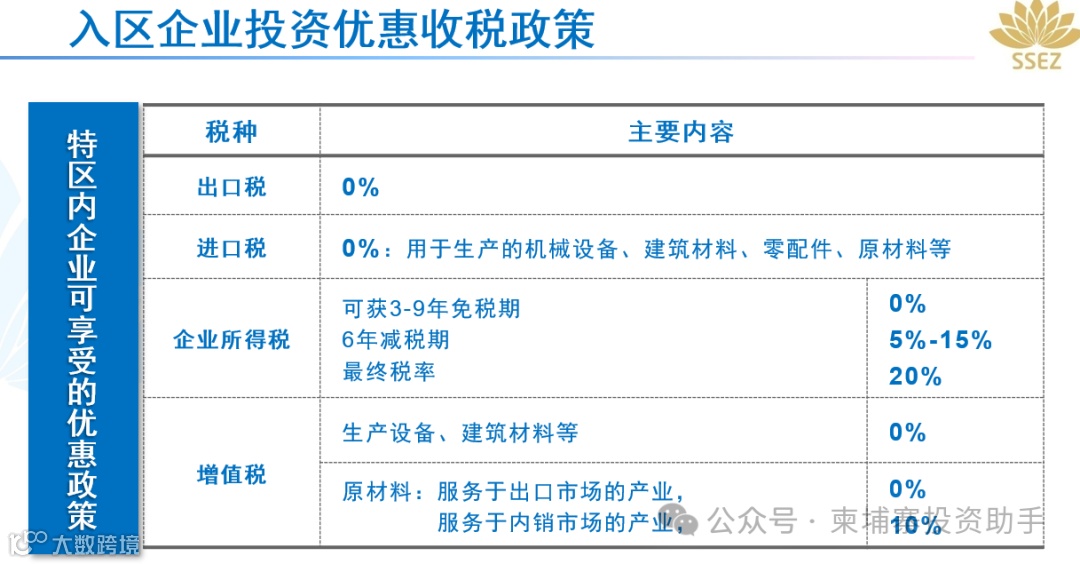 对于入驻西港特区的企业,可享受柬政府提供的如下税收优惠政策: