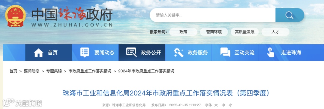 1月15日,珠海市政府官网公布,珠海1-11月份全市完成规上工业总产值5833.16亿元,同比增长7.2%;完成规上工业增加值1492.76亿元,同比增长9.4%,增速排名珠三角第一、全省第四。