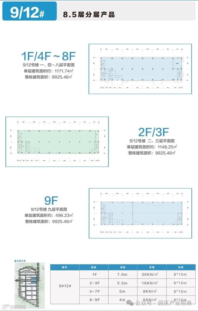 8.5层 1F 7.9m/2-3F 5.5m/4-7F 5m/8-9F 4m