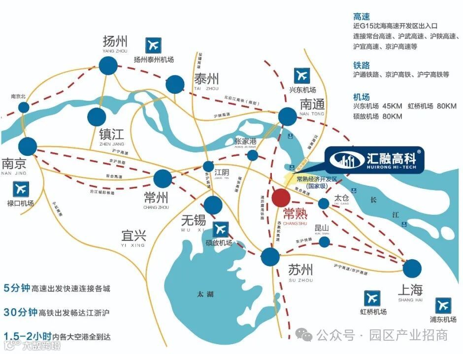 常熟经开区位于常熟东北部,区域总面积156平方公里,濒临长江、背靠港口,苏通大桥长江跨境而过,沿海高速、沿江高铁纵横贯通。通城高架实现15分钟到达市区和沪苏通铁路常熟站。
