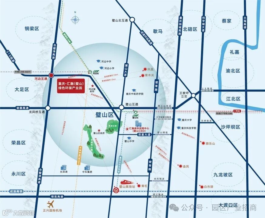 河边互通高速路口链接主城、江津、合川、铜梁等区域;