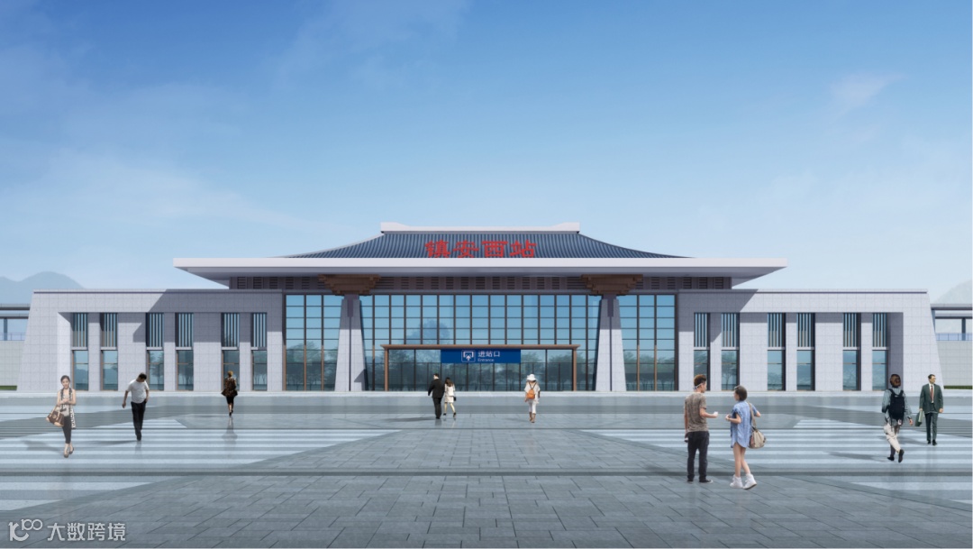 镇安西站位于陕西省商洛市镇安县,距离县城中心约5.4公里。站场规模2台4线,为线侧下式旅客站房。站房建筑面积约4000平方米,采用对称布局,地上二层地下二层,设计最高聚集人数600人。