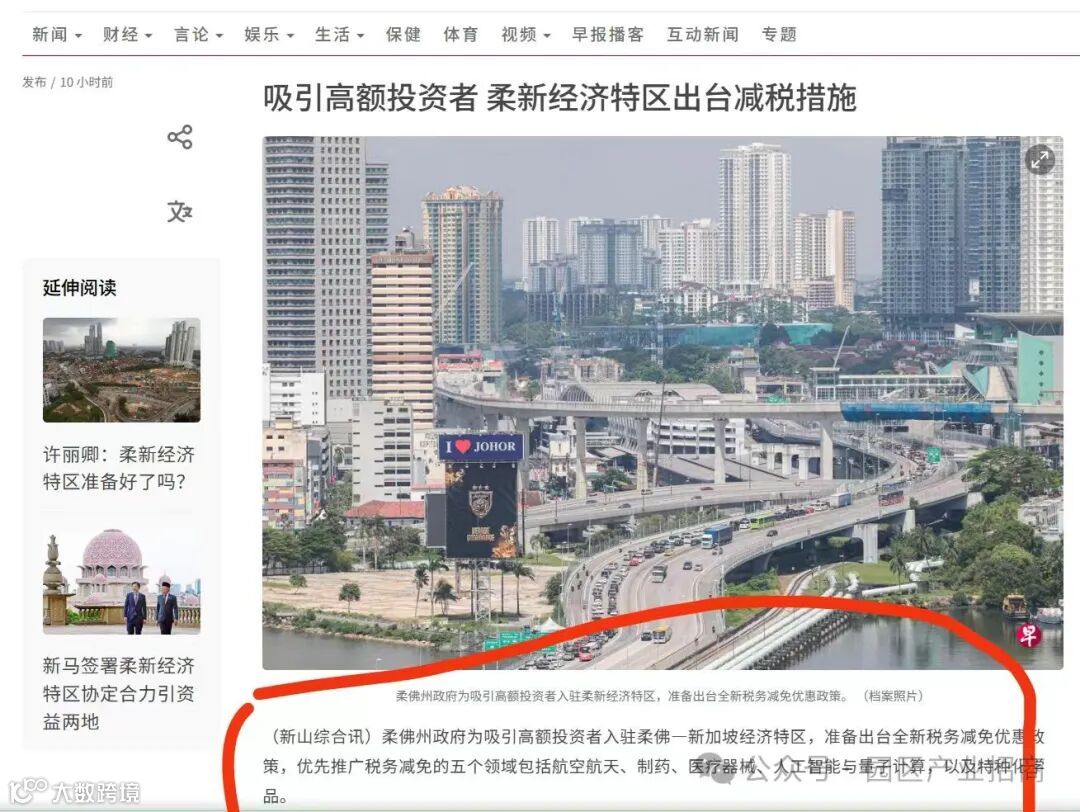 图:新加坡联合早报的文章,说新柔经济特区会优先对五个领域的投资给予优惠政策,其中包括特种化学品(具体以当地政府最新优惠政策为准)
