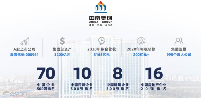 中南控股集团成立于1988年,其下有上市公司中南建设(SZ000961)。目前已形成了“4+1”业务布局——中南置地、中南建筑、中南高科、中南实业投资和中南教育。2020年总资产超3300亿元,员工逾10万人,管理人员近2万人。