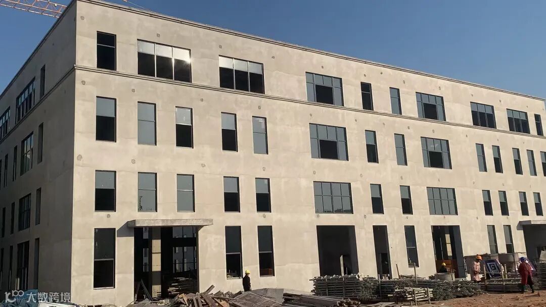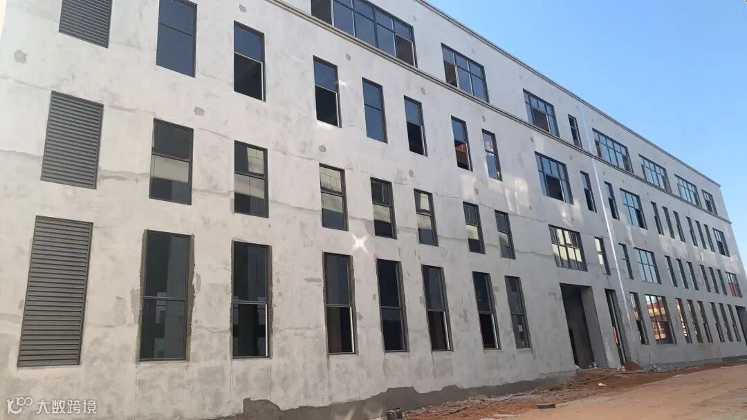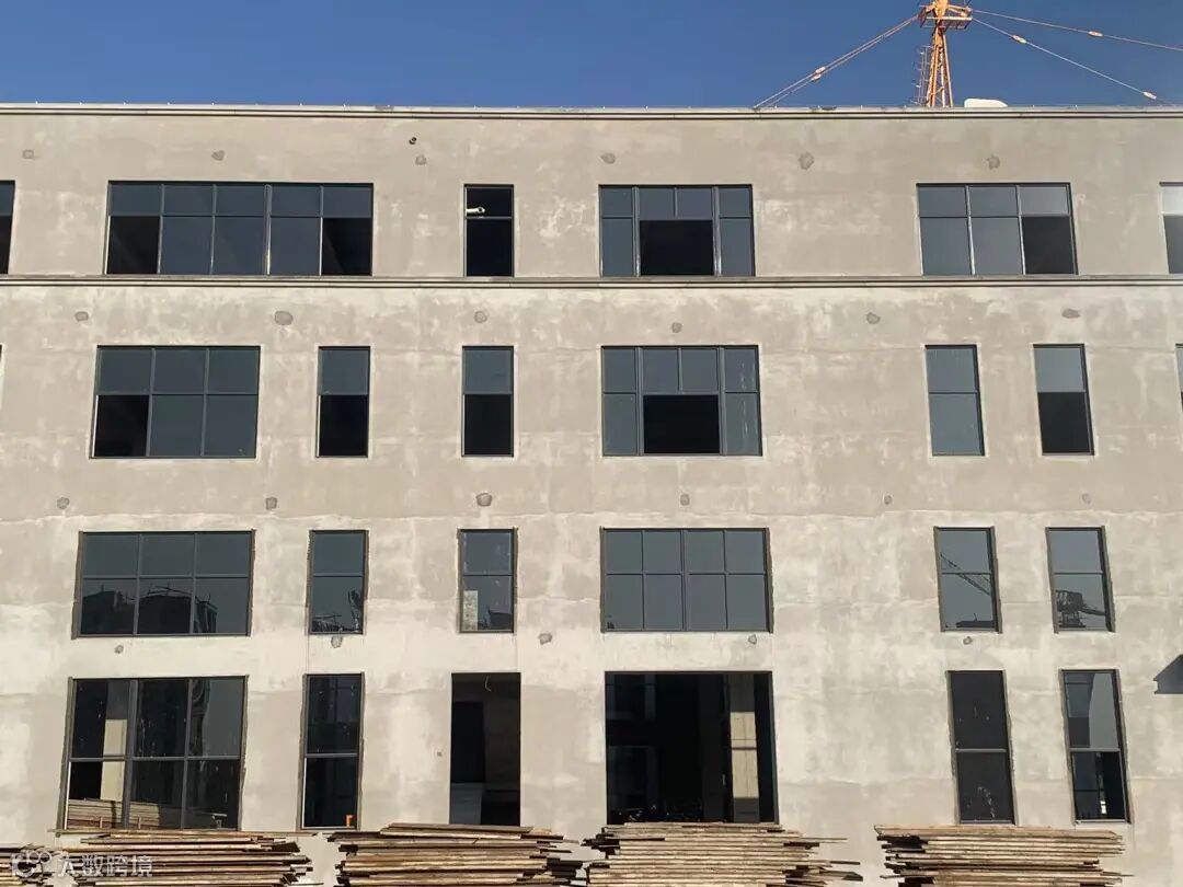 内外墙抹灰完成、门窗框完成、玻璃施工中;