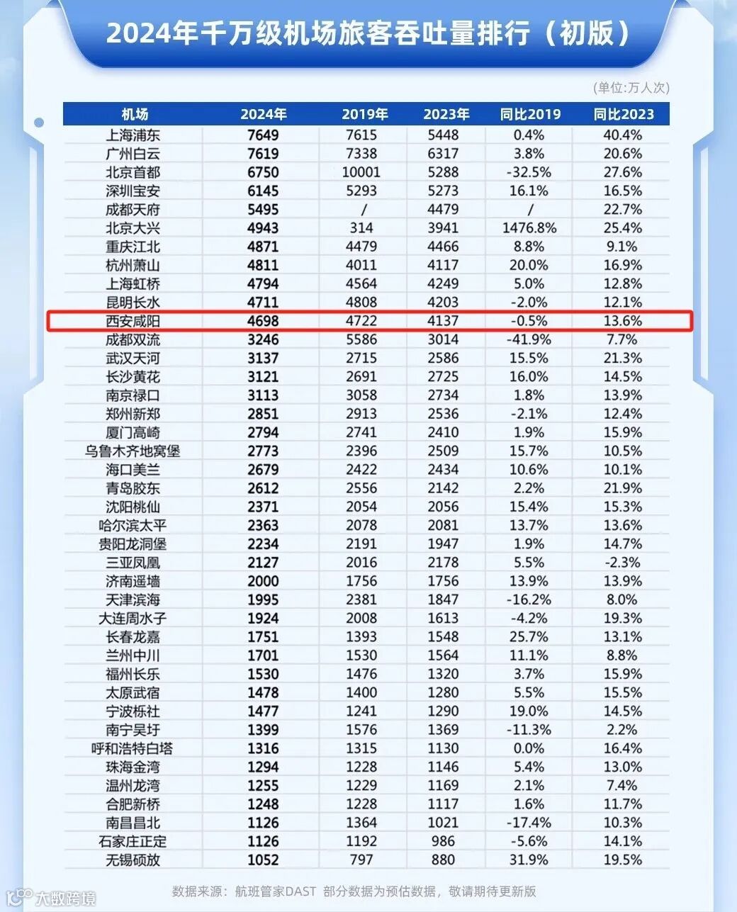 客运方面,西安咸阳国际机场建成启用全国第三个机场境外来宾支付服务中心。截至12月25日,旅客吞吐量达4633万人次,同比增长13.7%。