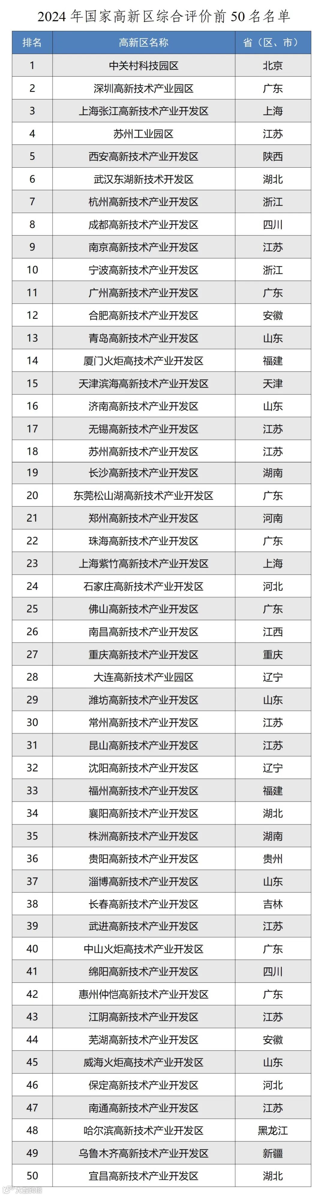 近日,工业和信息化部根据《关于印发〈国家高新技术产业开发区综合评价指标体系〉的通知》(工信部规〔2024〕169号),完成了2024年178家国家高新区综合评价工作。现公布综合评价前50名以及工业总产值、高技术产业营业收入、企业研发经费投入强度、人均技术合同成交额、优质企业数量、营商环境等六个单项评价前20名排名情况。