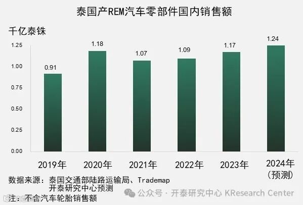 主要由于汽车保有量增长,开泰研究中心预计2024年泰国REM汽车零部件的国内销售额将达1,240亿泰铢,同比增长6.4%。