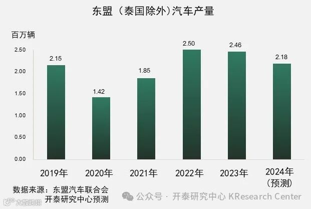 作为泰国OEM汽车零部件重要出口市场之一的东盟国家(不含泰国)2024年汽车产量预计降至2,180万辆,同比萎缩11.2%。其中印度尼西亚因汽车贷款利率上升导致汽车销售量大幅下滑,越南也开始从国内生产转向进口汽车。这两个国家的汽车产量占除泰国外的东盟汽车产量的约60%,导致对泰国OEM汽车零部件的进口需求趋向减少。