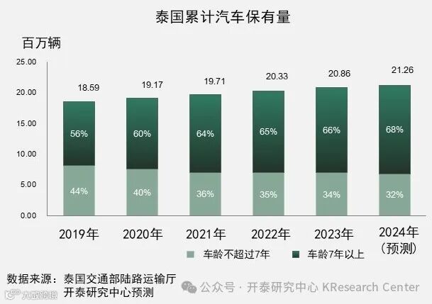 泰国累计汽车保有量持续增加,预计2024年将高达2,126万辆,其中车龄超过7年的汽车占比为68%。由于经济尚未全面复苏,消费者延长了汽车的使用时间,导致对REM汽车零部件的需求上升。泰国产REM汽车零部件的市场份额超过60%,其余40%来自进口,中国是REM汽车零部件的主要进口来源国。