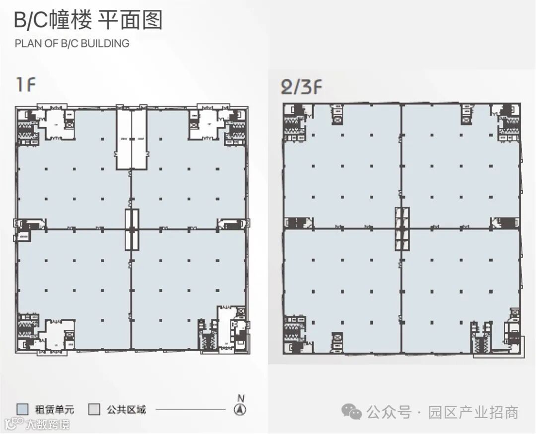 单栋面积:A幢3395㎡,B幢15405㎡,C幢15400㎡,D幢3950㎡; 类独栋设计,租赁面积有多种组合可供选择;