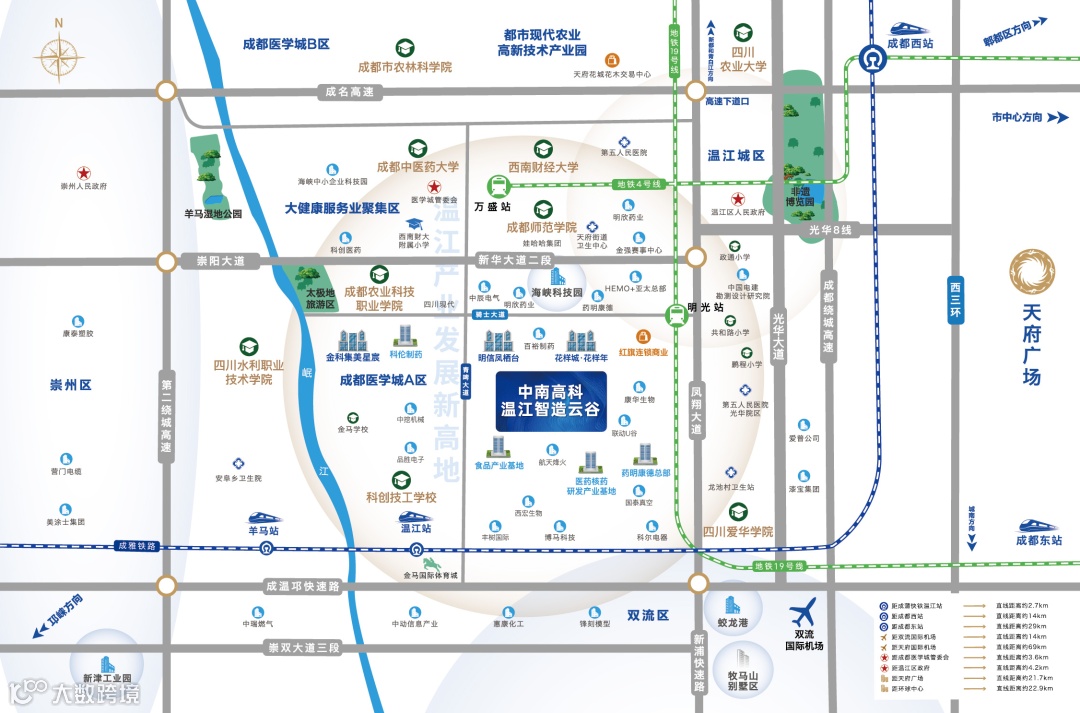 同时,坐拥四川农业大学、成都中医药大学、成都电子科技大学等 19 所高等院校和职业院校,集聚 “两院” 院士等领军人才 233 名,国家级重点实验室 2 个,拥有全国唯一具备生物靶向药物研发和产业化功能的国家工程研究中心,生物医学产业生态圈加速聚集。