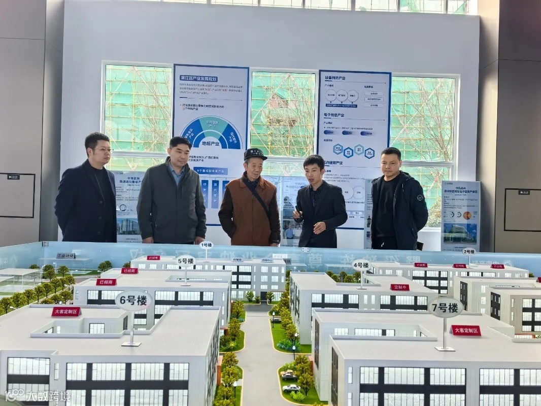 徐志成秘书长一行参观了中南高科·成都温江智造云谷的招商中心、沙盘、样板房等。中南高科温江项目招商负责人刘强为大家详细讲解了中南高科·成都温江智造云谷的园区定位、建设规模、发展方向、现有的招商成果。
