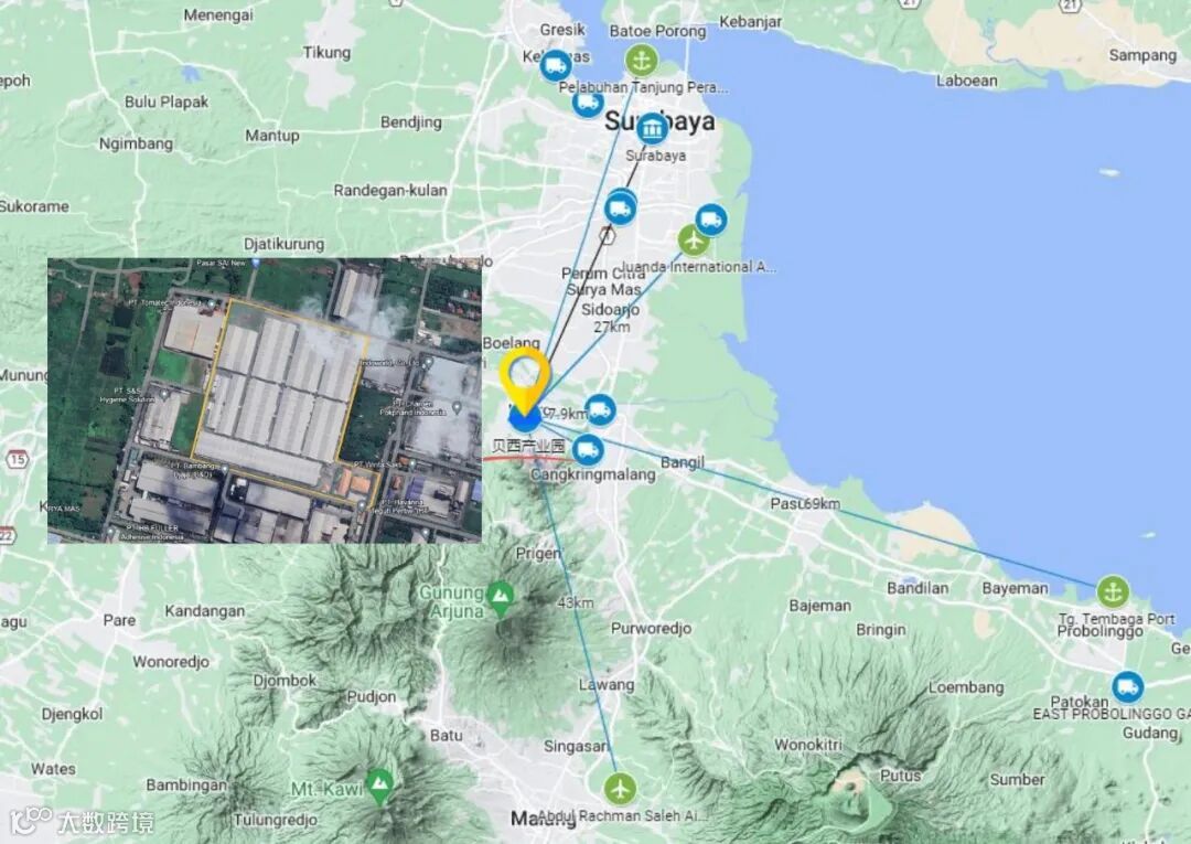 贝西产业园距印尼第二大国际机场Juanda机场直线距离27公里,距离第二大港口40公里,距离最近的两个高速出入口均不超过8公里。