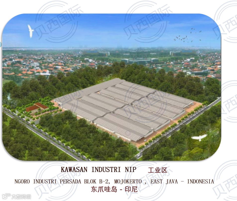 贝西产业园位于东爪哇Ngoro Industrial Park(NIP)工业园内,占地20公顷,主要设施建面13.66万㎡,其他设施建面6万平。