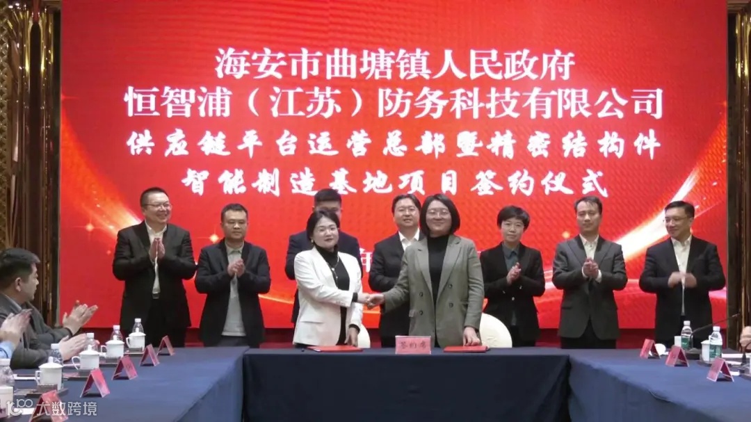 曲塘镇与恒智浦(江苏)防务科技有限公司负责人共同签署项目合作协议。