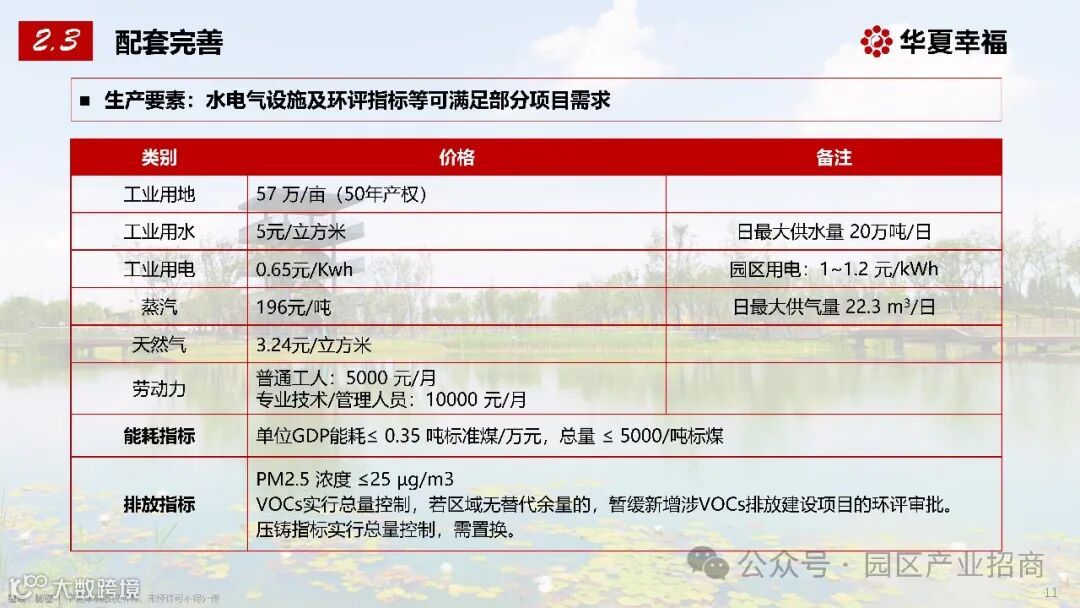 工业用地:57 万 / 亩(50 年产权),土地资源丰富且价格合理。