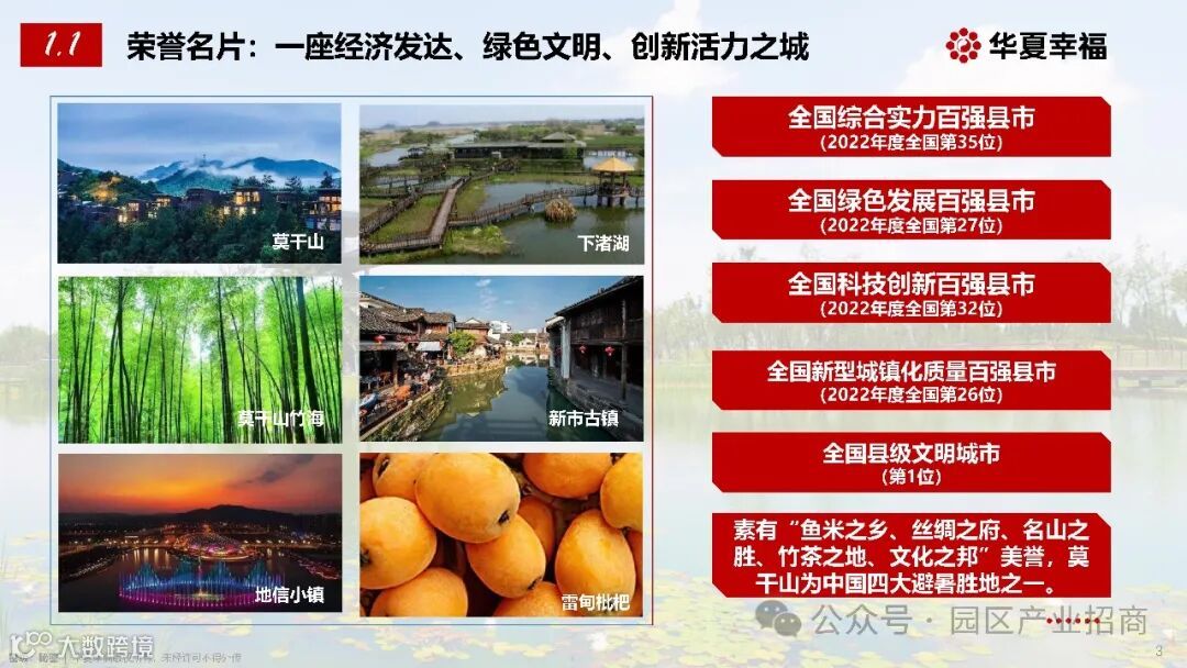 在长三角这片充满活力的经济版图中,德清宛如一颗璀璨的明珠,散发着独特而迷人的光芒。作为全国综合实力百强县市,德清凭借其优越的地理位置、蓬勃发展的经济、强大的产业承载能力以及优厚的招商政策,正成为投资者们瞩目的焦点。今天,就让我们一同走进德清,探寻这片投资热土的无限潜力。
