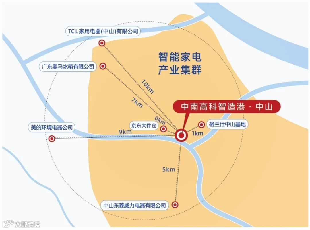 区位上,项目位于中山市黄圃镇,与格兰仕(中山)家用电器有限公司仅一路之隔。作为世界级家电产业集群,重点发展智能家电产业链中游——家电制造,已有美的、格兰仕、奥马冰箱、TCL、中山东菱威力电器、京东等6家电龙头企业深耕布局,已形成龙头家电企业牵头、中小企业配套性生产、专业机构提供增值服务的家电产业集群网络。