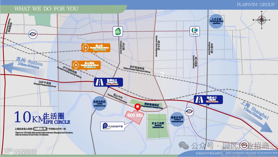 【交通】:昆山中环高架-郁金香出口2KM,G2京沪高速-张浦/陆家出口6KM,地铁11号线-花桥站11KM,苏州地铁11号线-神童站4KM,昆山南站9KM,昆山站10KM,上海虹桥机场45mins,上海浦东机场80mins.