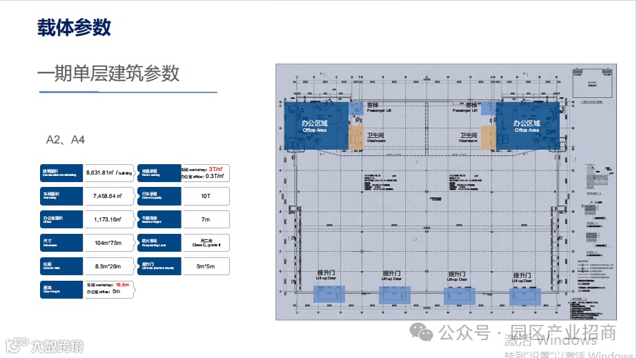 【厂房层高】:1楼:8.7m,2-7楼:6.5m
