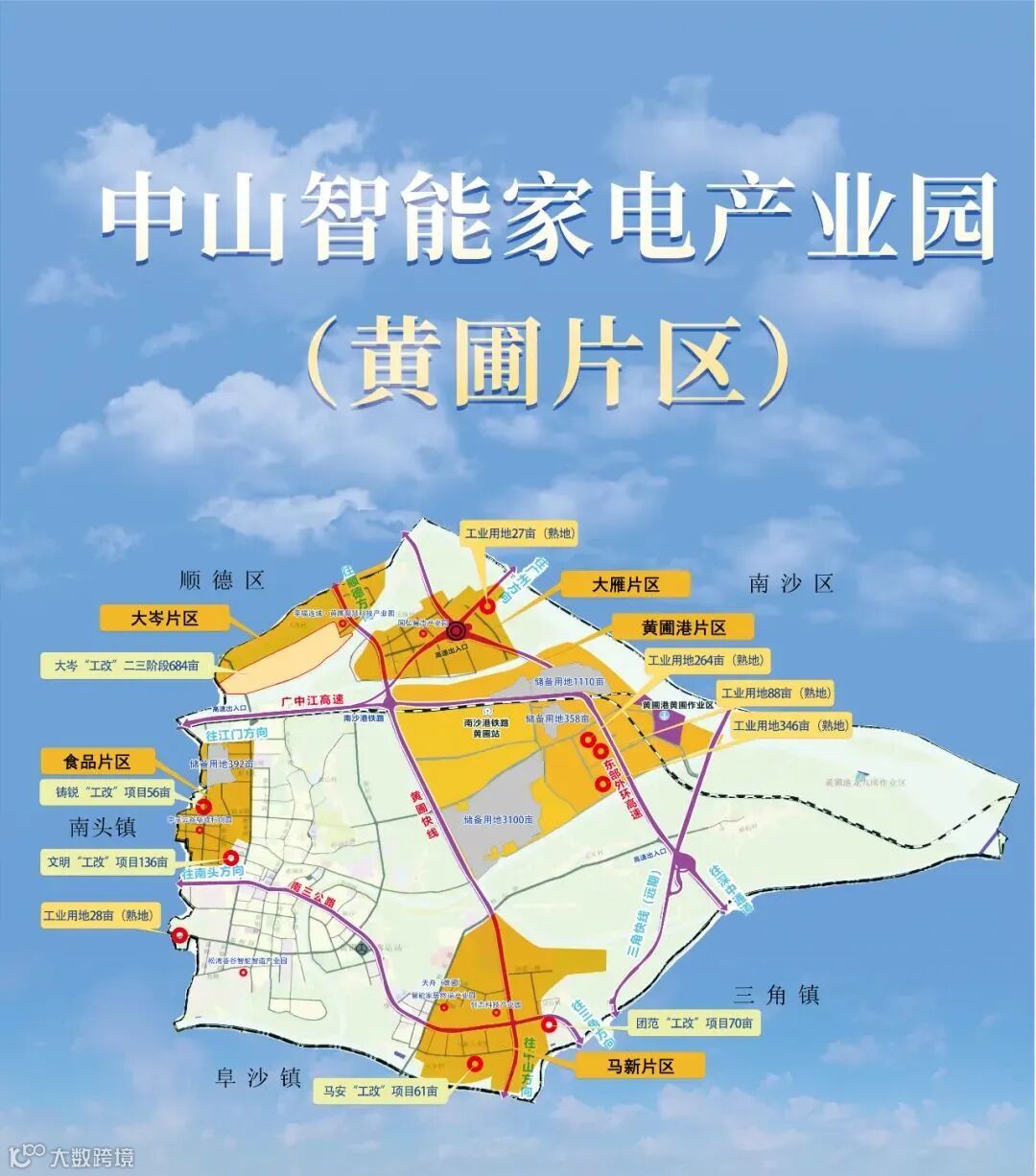 在家电产业快速发展背景下,为提升产业竞争优势,黄圃瞄准智能家电、智慧家居、新一代信息技术等产业,以黄圃快线为轴带,以东部外环高速北部出口为节点,串联格兰仕中山基地以及马安、大岑等旧改区域,,以高标准谋划万亩产业空间,建设中山智能家电产业舰队的重要支撑,吹响“工改”号角!