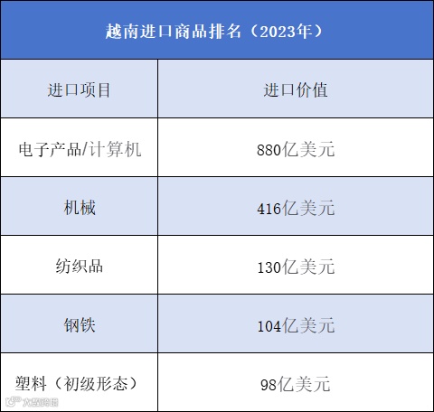 越南在原材料、中间产品和生产设备方面高度依赖进口,如韩国企业在越本土化率较低,反映了其对外部供应链的依赖。