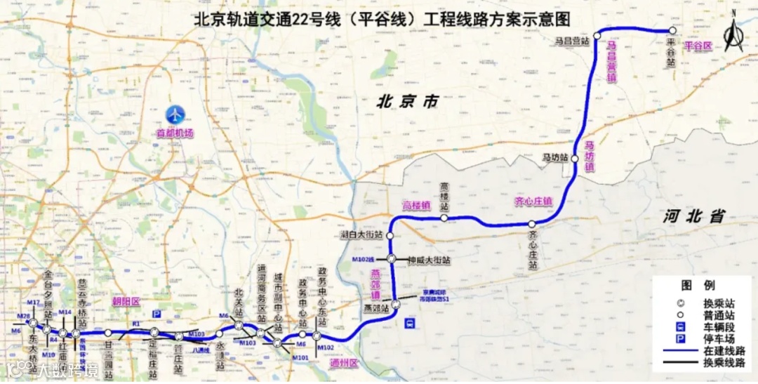 北京地铁22号线预计2026年底开通,最高时速可达到160公里/小时。按照规划,这条线路将衔接12条地铁、2条城际铁路、2条市郊铁路,共16条轨道交通线路。线路西起朝阳区东大桥,东至平谷新城,途经朝阳区、通州区、河北省三河市、平谷区等地区,串联了CBD核心区、定福庄组团、城市副中心、河北燕郊、平谷新城等重点功能区。目前全线22个土建标段中已经有19个进场,18个标段实现实质性开工。较早开工的管庄站、政务中心站、政务中心东站、马昌营站、马坊站、平谷站、神威大街站和潮白大街站已经完成结构封顶。