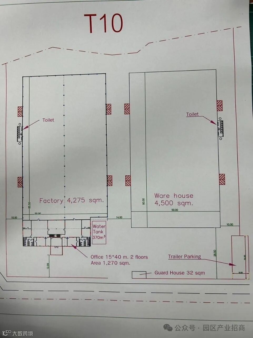 第一座厂房面积:4,275平米(宽50米,长85.5米,高14米)
