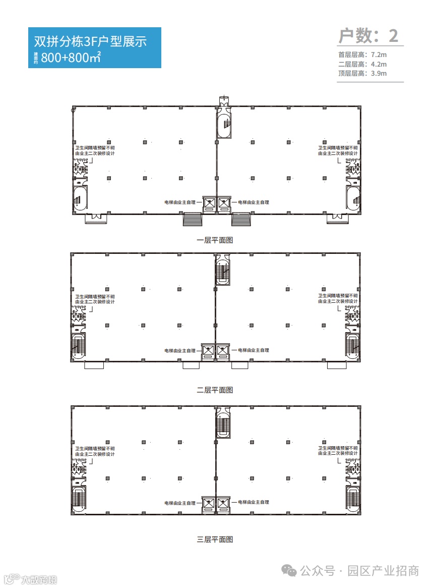 电梯:整栋预留2T电梯井(3.2m*2.8m),支持定制;分层安装2T电梯;